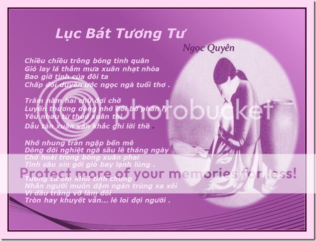![]() Giọt Biển Cám ơn em đã khóc tôi Mưa trên sợi tóc chẻ đôi giọt tình Từ em nước mắt tượng hình Chỗ có hạt cát thình lình lăn qua. Khóc đi, cứ khóc thật thà Cho con mắt biết kiêu sa lạnh lùng Chắc gì đã được đi chung Để nghe biển gọi lời cùng tận nhau. Cám ơn giọt lệ xanh xao Một lần em bước lạc vào mắt tôi Buồn còn bỏ lại trên môi Phấn son đã biết lẻ loi đợi chờ. Ngày sau có gặp tình cờ Coi như người lạ giả vờ chưa quen Tôi đâu muốn phụ tình em Trời còn không thật trăm năm chắc gì!! Hư Vô ![]() (Cảm tác bài thơ Giọt Biển của Hư Vô) Cám ơn anh đã yêu tôi Cho dù nước mắt chia đôi duyên mình Từ anh xa lạc bóng hình Một mình lẻ bóng ru tình thiết tha . Vẫn đây dòng lệ thật thà Đêm đêm lướt phím mưa sa nảo nùng Ai hay một mảnh tình chung Sao đành ngả rẽ ngàn trùng biệt nhau . Cám ơn anh mối tình đau Đắng cay pha lẫn ngọt ngào riêng tôi Dẫu còn hương vị ấm môi Nhưng đời thôi đã xa rồi ước mơ . Cám ơn anh đã hững hờ Cho tôi ngơ ngác đôi bờ lạ quen Cũng bằng như đã phụ em Hỡi người tim đá có mềm mấy khi !! Ngọc Quyên |