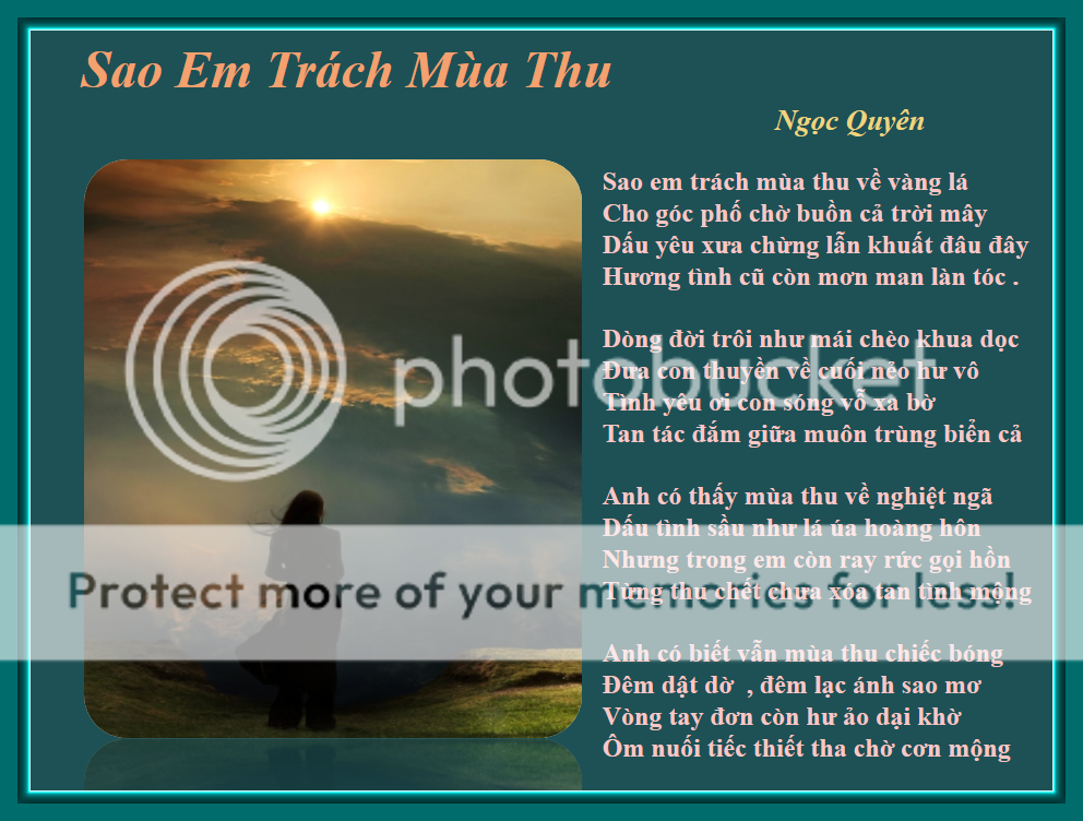![]() Ảo Ảnh Có lúc hồn tôi trong ảo mù Tình yêu bừng dậy giữa âm u Có hạt nắng rơi vào tim vỡ Lung linh tỏa sáng tựa thiên thu . Có lúc hồn trôi miền quá khứ Khuấy lên âm ỉ đống tàn tro Như ngọn hỏa sơn tràn phún thạch Vào cung nguyệt ái khúc tình mơ . Có lúc tim đau buốt dại khờ Đâu người chung ước , hỡi người mơ ! Có biết giữa đêm trường trăn trở Lệ ướt chăn đơn kiếp đợi chờ . Hay chăng hồn vẫn gọi tình quân Trăng soi chiếc bóng gió thì thầm Tóc xõa buông , ngực trầm môi ngọt Dáng mai đầy hương tỏa thanh xuân . Có những lúc thực hư tình mộng Bờ đêm sương xuống lạnh hàng hiên Ngõ vắng ngân nga hàng liễu rủ Người về cho tàn giấc cô miên . Ngọc Quyên Niêm Khúc Cuối