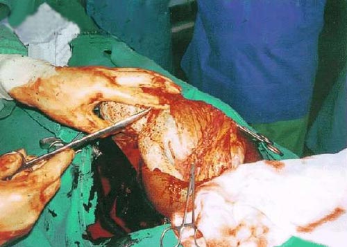 Các bác sĩ cắt bỏ lớp xô cuốn bên ngoài cậu bé